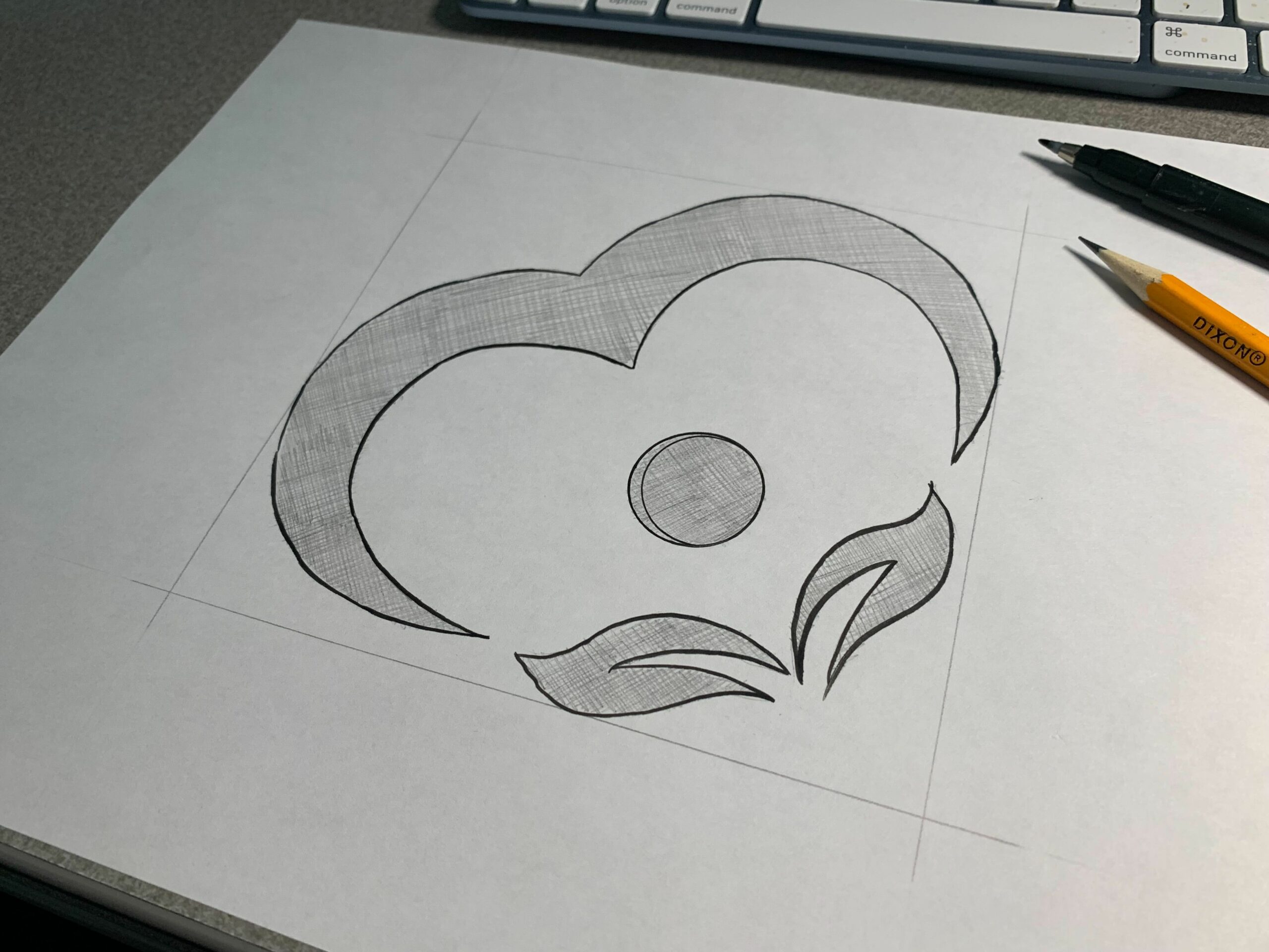 The final design is an elegant, clean, and recognizable icon accompanied by stacked type presented in a strong, refined typeface.