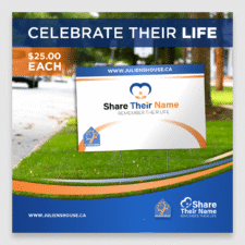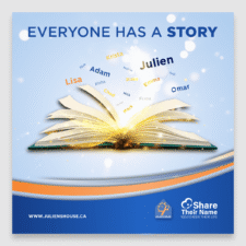 The logo for Julien’s House’s “Share Their Name” campaign supports the notion that you won’t hurt your loved one by mentioning their name. You are giving them a gift by telling their story, sharing their memories, and speaking about their life. It was prominent from early on that this was an impactful message which will reach a large audience who all share this in common. It was important to not only stay true to the message, but also represent everyone’s story. This was achieved by symbolizing loved ones as a heart. The leaves represent the tree in Julien’s House’s logo which forms the bottom of the heart.